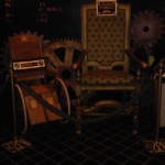 A masik kep jobb oldalan Oz szeke lathato, a bal oldalon pedig a kesobbi nyugati boszorkany huganak toloszeke. Ki volt allitva, fabol van, allati.