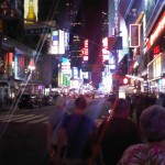 A darab egyebkent jo volt, a tortenetet szerintem erdemes elolvasni. Amikor kijottem a Broadwayre este 11-kor, akkor eloszor erintett meg a Times Square erdekessege. Ezernyi feny es ugyanannyi ember, mint napkozben. (A fenykep jobb oldalan talan lathato egy kek folt, az a Morgan Stanley foepulete.) Minden nap itt jarunk be dolgozni, de eddig mindenki csak enyhe undorral tudott nyilatkozni a Times Square-rol, az emberaradat miatt, amin minden nap at kell vagnunk.