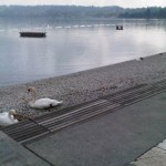 Mielott az Ovarosban indulnek, elmentem az ingyenes bringaberlo helyszinere, de sajnos ok csak majustol uzemelnek, igy bringat sem tudtam szerezni. (Bar penzert biztos tudnek berelni, de nem fogok.) Mivel ez a genfi strand bejaratanal van, igy bejottem megnezmi az milyen. Ures. Atvettek az uralmat a hattyuk es egyeb csipogo szarnyasok. Gondolom nyaron, amikor jo ido van kitakaritjak es lehet furdeni, mert egyebkent minden adott volt hozza. (Belepos, amikor strandidoszak van.)